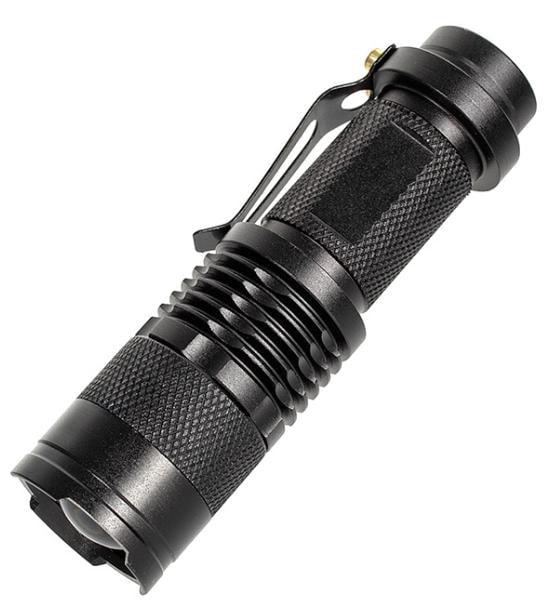 AC Prof SK68Компактний кишеньковий ліхтарик обладнаний одним світлодіодом CREE Q5 LED, перед яким встановлена оптична лінза опуклої форми з можливістю зміни фокуса. Ця конструктивна особливість дає змогу освітити широку зону поблизу та вузьку далеко. |